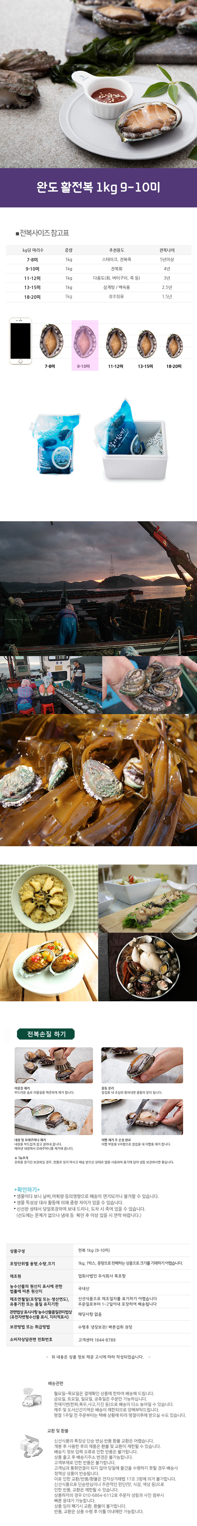 완도 활전복 1kg 9-10미