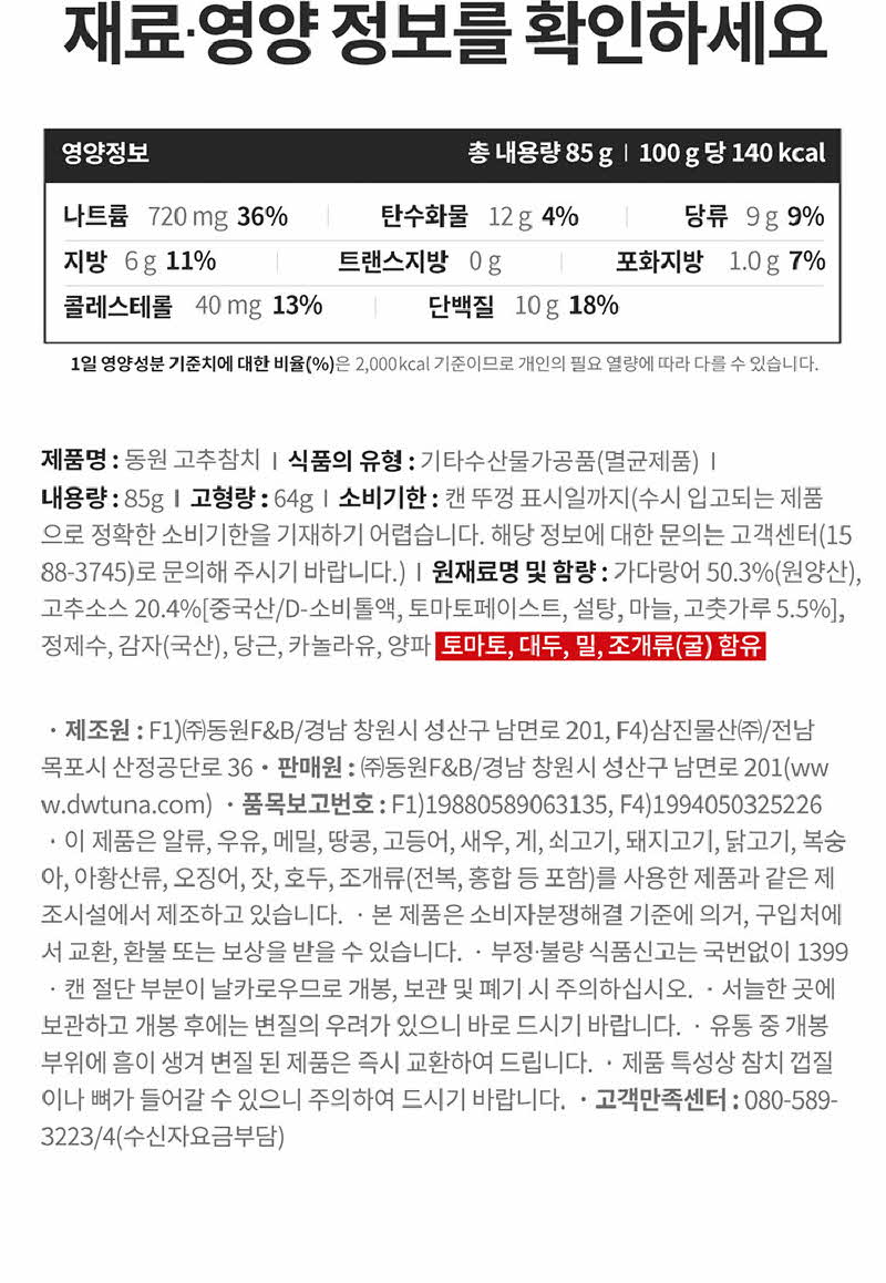 동원 고추참치 85g x 12캔
