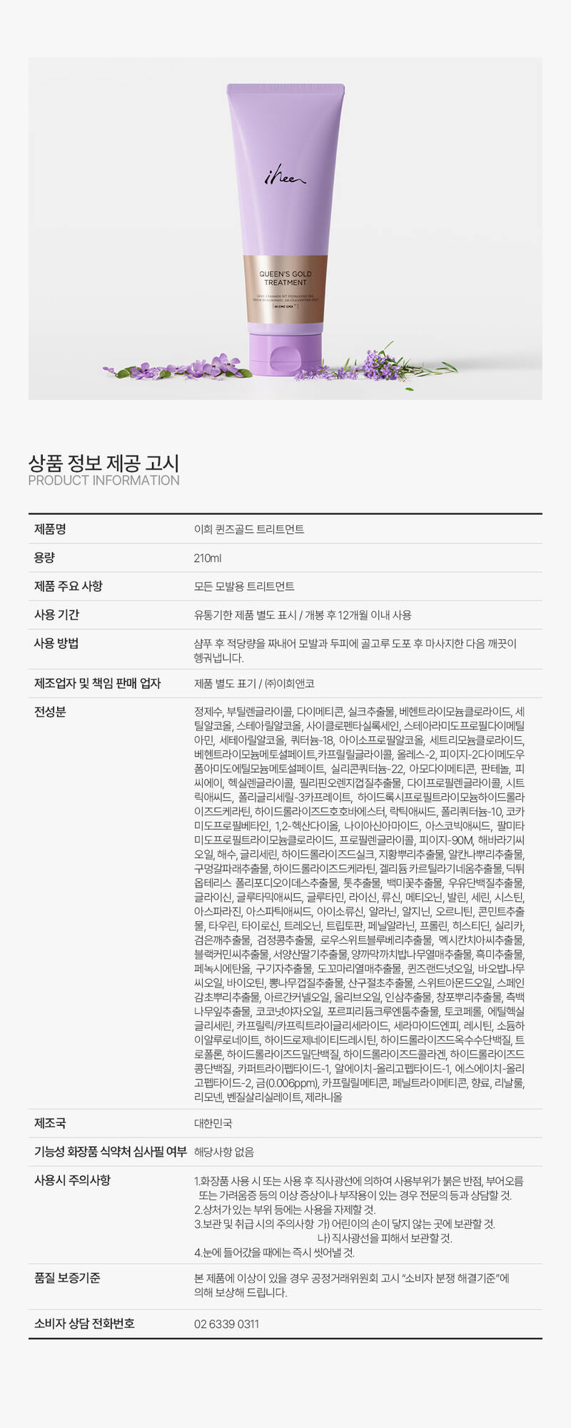 [ihee] 이희 퀸즈골드 트리트먼트210ml
