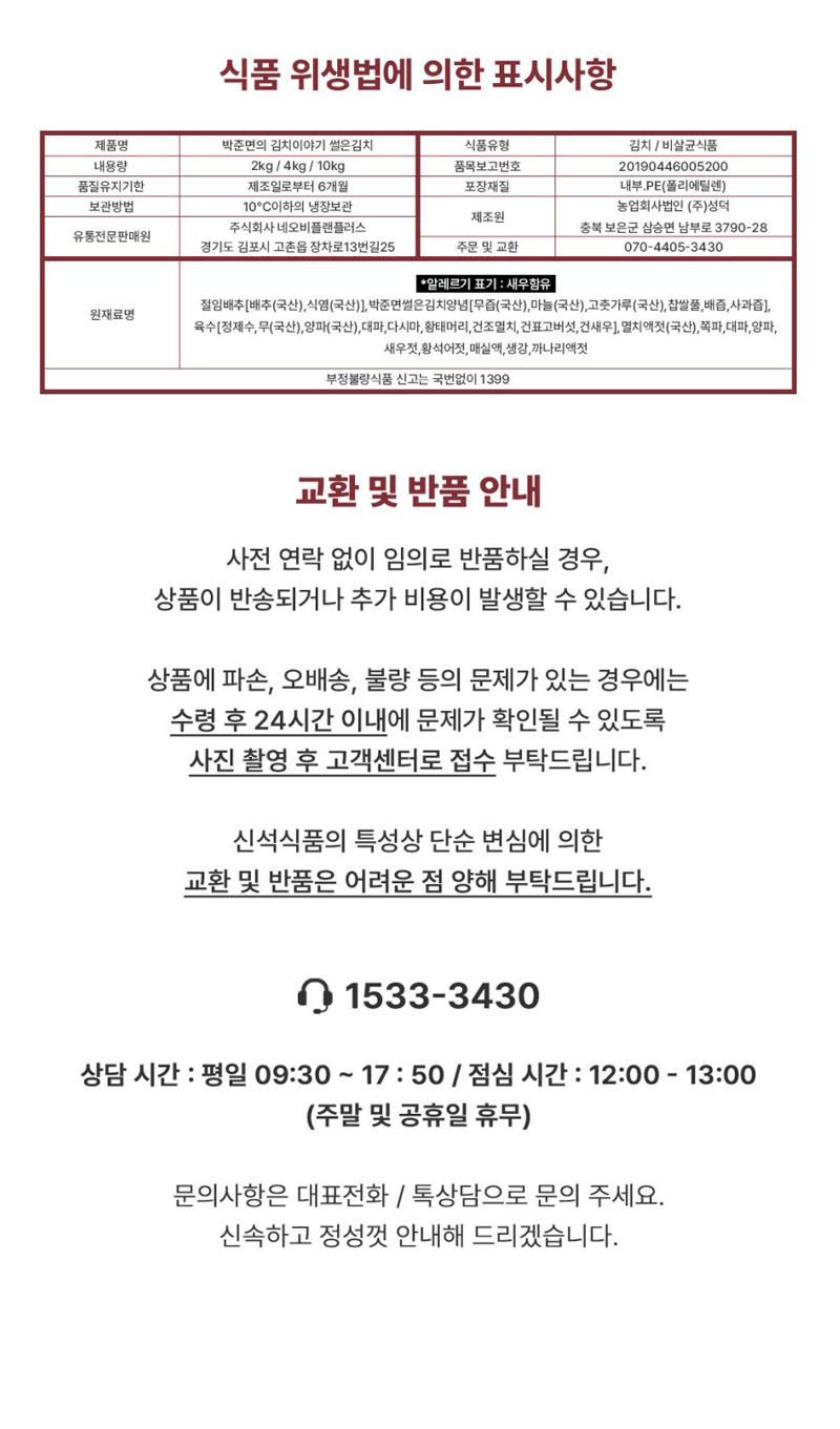 [박준면의 김치이야기] 썰은배추김치 4kg