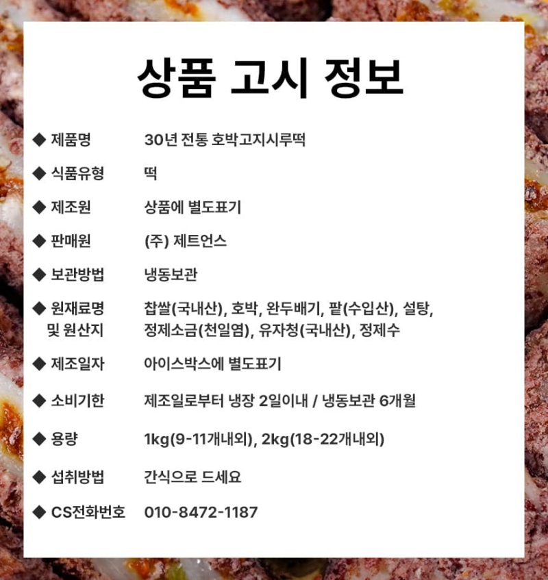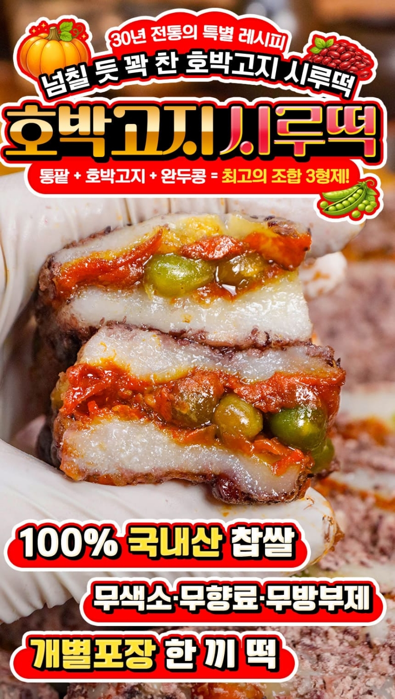 재료부터 다른 30년 전통 호박고지시루떡 1kg(9-11개내외)