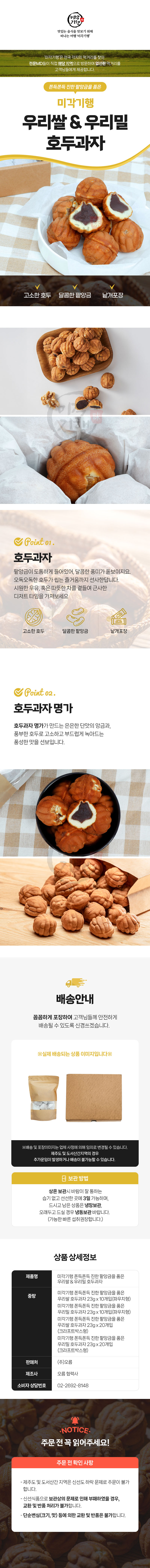 [미각기행] 쫀득쫀득 진한 팥앙금을 품은 우리쌀 & 우리밀 호두과자 23g x 20개입(크라프트박스형)