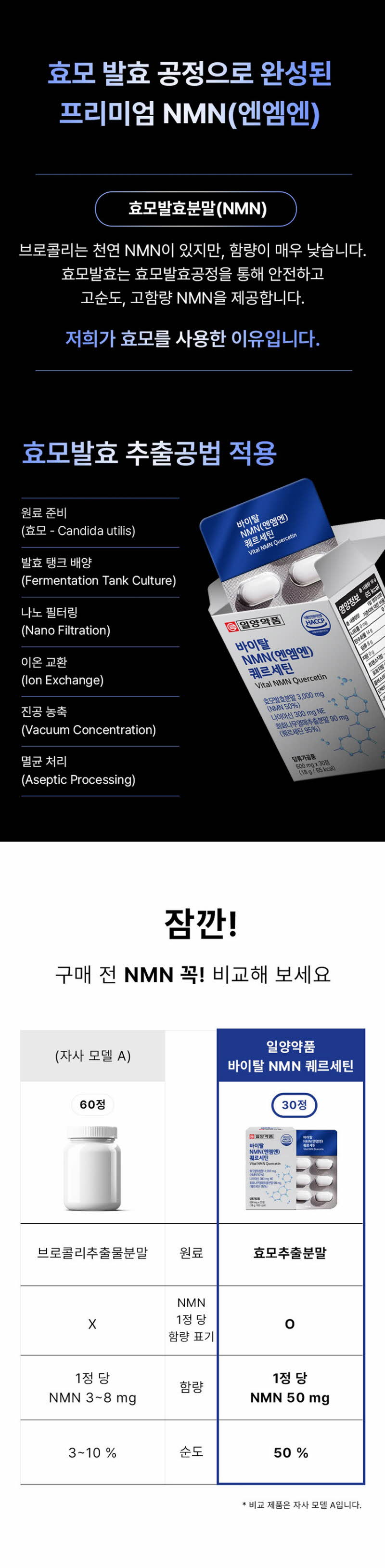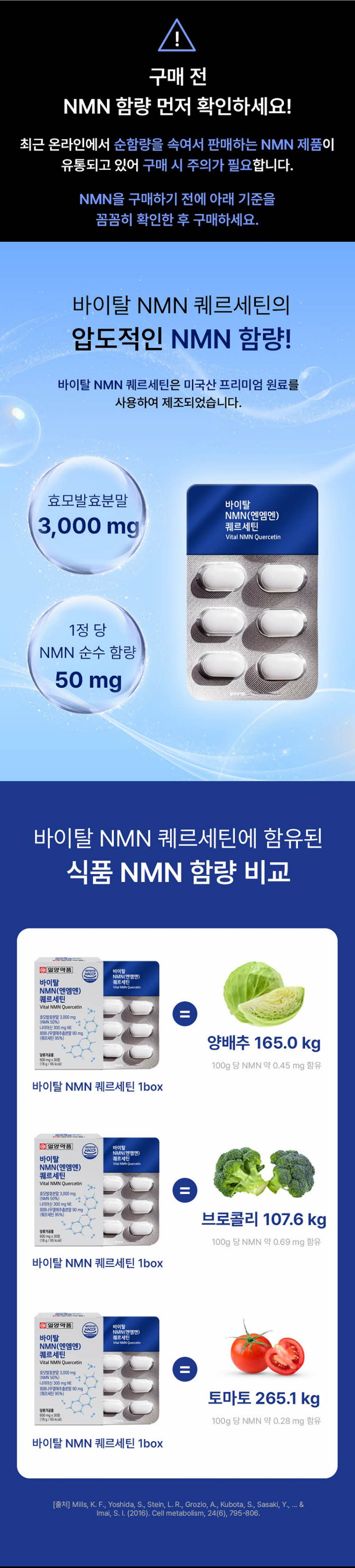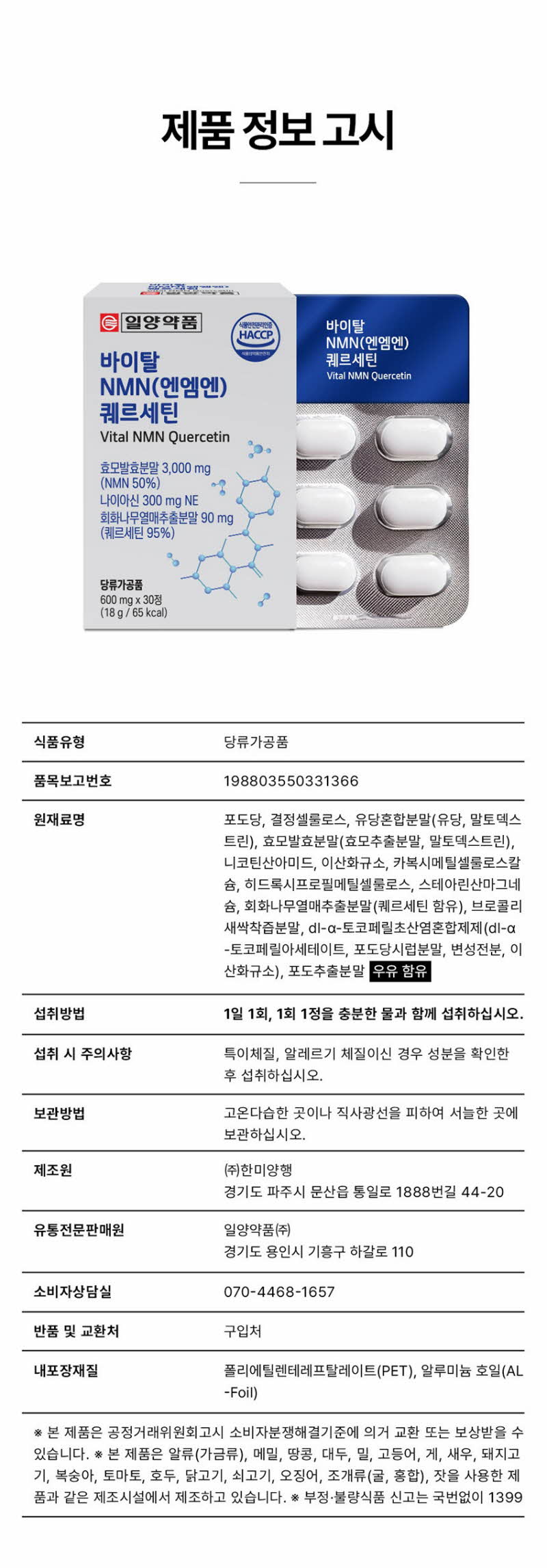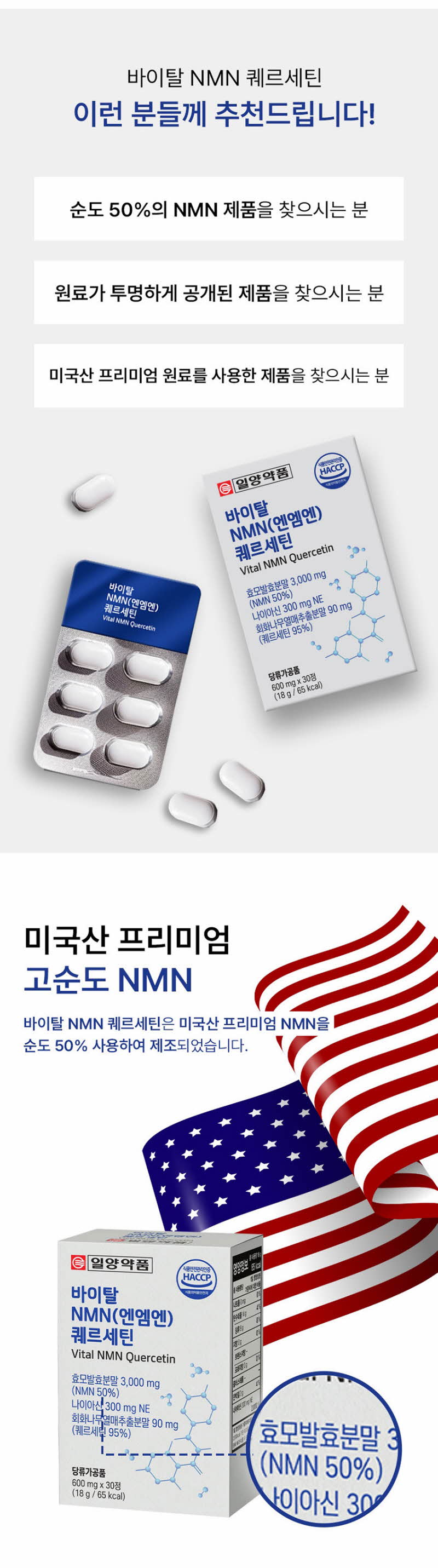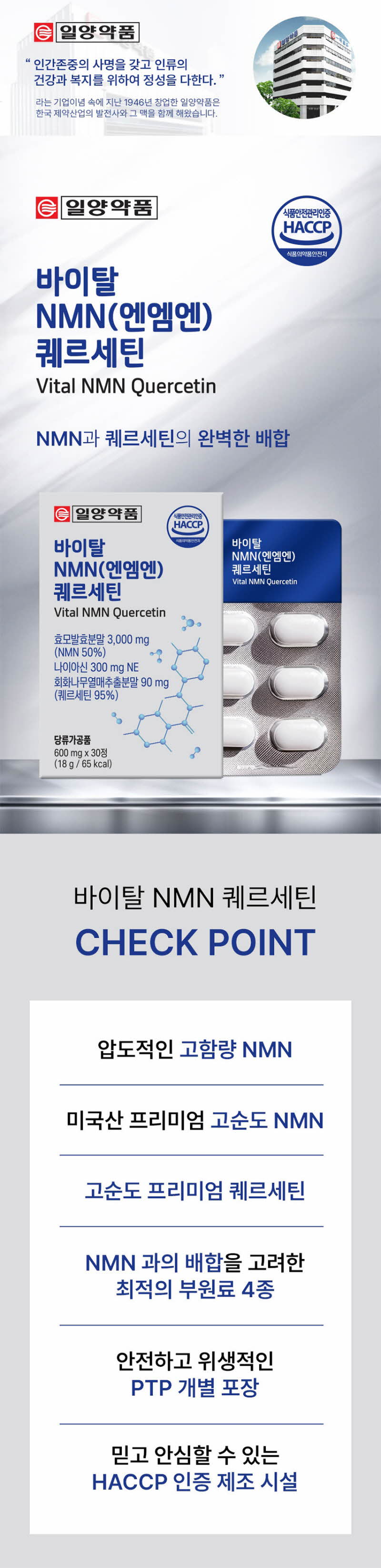 [밸류업] 일양약품 바이탈 NMN 고순도 프리미엄 퀴르세틴 600mg x 30정 / 세포 에너지 활성화, 인지기능 집중력 지원